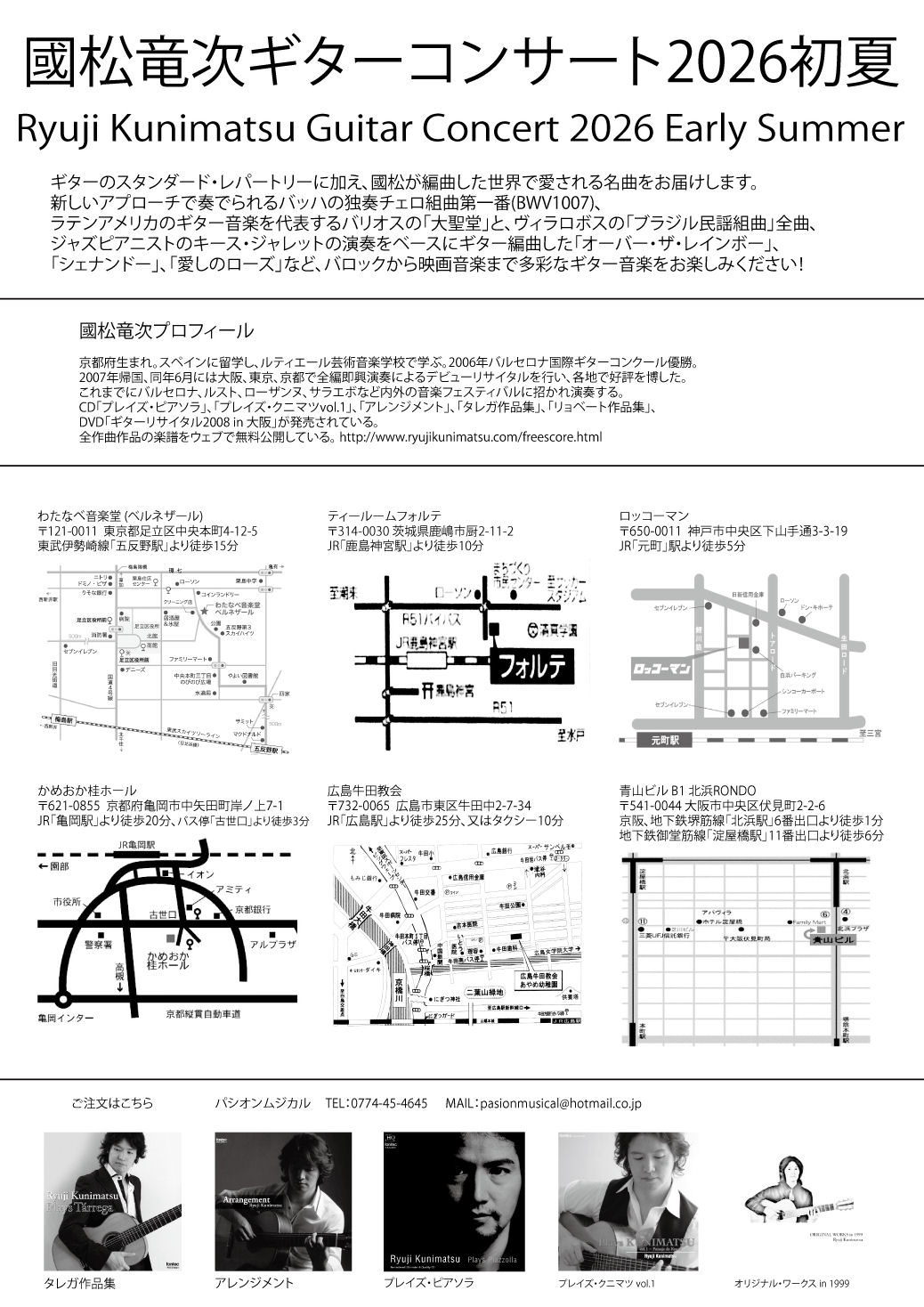 國松のコンサート情報をBCCメールで受け取りたい方は「コンサート案内メール希望」とタイトルに書いた空メールを ryujikunimatsu@gmail.com へ送信して下さい。